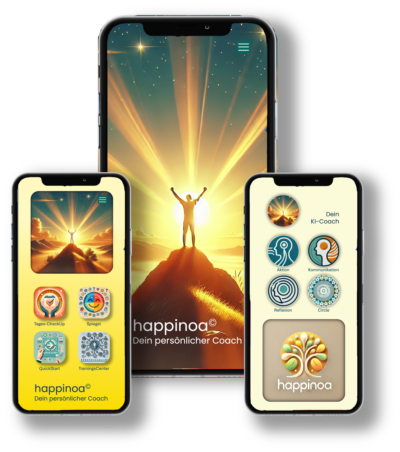 Die happinoa-App von happinoa© bietet dir individuelles Live-Coaching – “rund um die Uhr”.